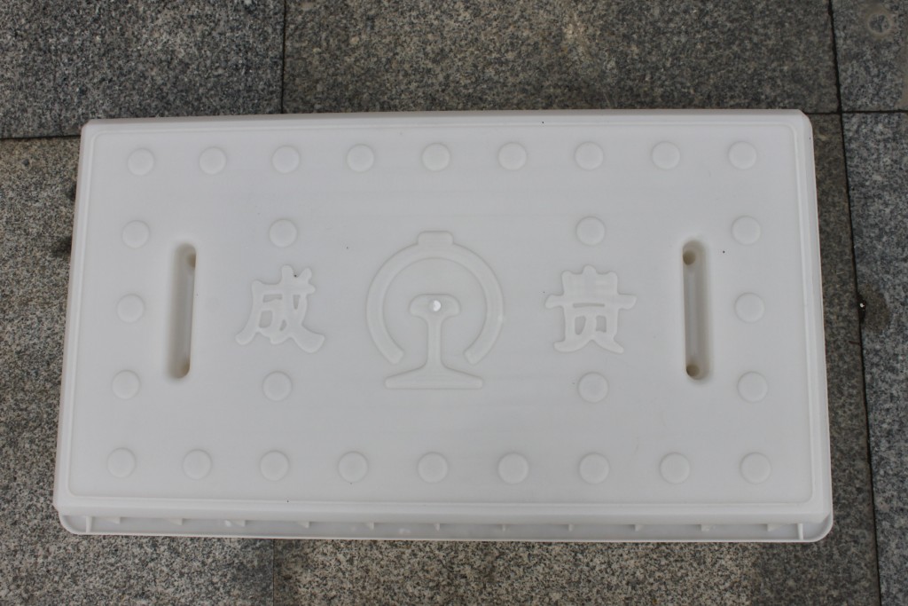 此款塑料模具為成貴高速鐵路線專用高鐵蓋板模具,材質為PP聚丙烯材質,表面富含光澤。設計采用兩大孔及四小孔下水功能,凸起小圓點則相應起到了實際水泥蓋板的防滑作用,主要應用于高鐵水泥橋梁路面下水蓋板的預制。
