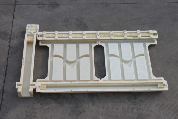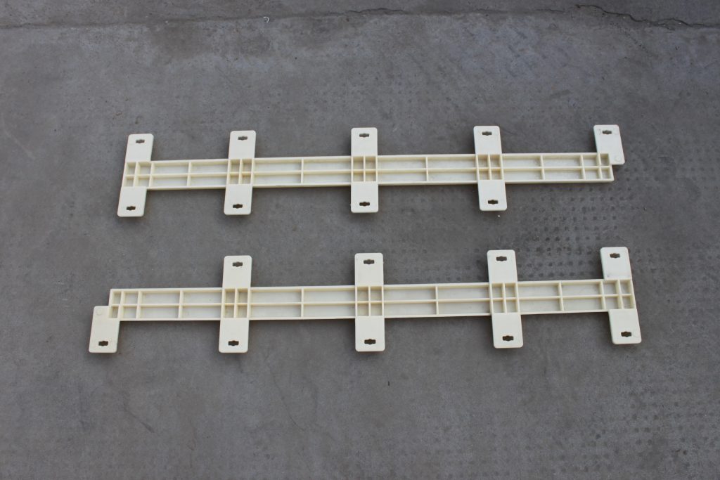 2.84海鷗型鐵路護欄塑料模具套裝的上下梁模具,下梁兩邊分別配有下梁盒子,而上梁兩邊則是插片及上梁壓條。