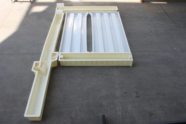 說其這款鐵路路基護欄模具最大的區別就在這里了,一片式水泥欄片模具為工字多欄桿結構,尺寸為187.5*140.5*9厘米,二片式水泥欄片模具則由3+4組合工字設計,組合尺寸和一片式相同。主要好處是二片式欄片預制澆筑體積相對較小,重量更低,方便施工。