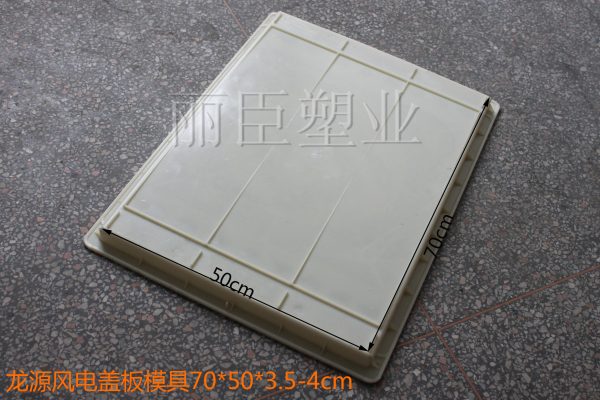 一款專用于龍源風(fēng)電項目適用的水泥蓋板模具,主要材質(zhì)采用的是塑料原料中的佼佼者ABS材質(zhì),蓋板模具主要設(shè)計以鵝卵石防滑及龍源LOGO圖案設(shè)計,為龍源集團定制。其中在尺寸方面有個小細(xì)節(jié),實際水泥蓋板澆筑整體高度為4厘米,蓋板模具寬度兩端內(nèi)壁小倒角高度為3.5厘米。