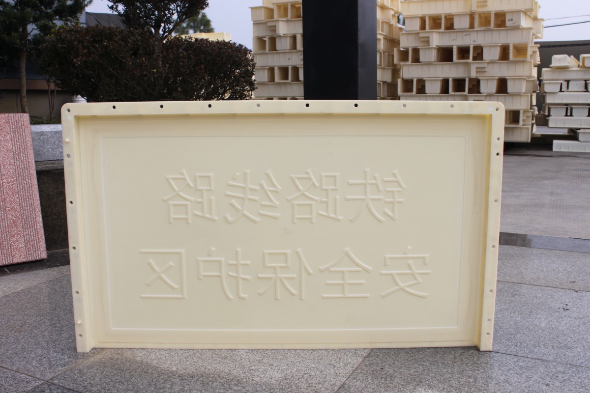 標(biāo)識牌塑料模具主要的結(jié)構(gòu)為2快拼合而成。標(biāo)識牌總共分為2個部分:一面印有“國家鐵路安全線路保護(hù)區(qū)”字樣,另一面為“根據(jù)國務(wù)院《鐵路安全運(yùn)輸保護(hù)條例》設(shè)立”字樣。此水泥警示牌模具為國家中鐵局定制,任何企業(yè)及個人制造都需國家鐵路局授權(quán)許可才可制造生產(chǎn)。